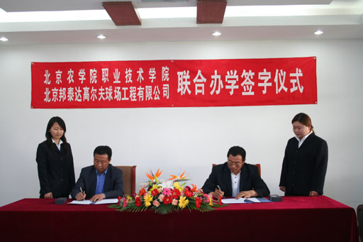 5月20日,职业技术学院与北京帮泰达高尔夫球场工程公司就联合培养高尔夫球场建设管理人才签订联合办学协议。