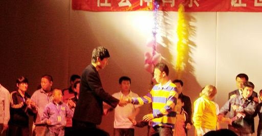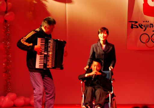 爱心、和谐的旋律始终贯穿整台晚会。永利3044官网唯一食品系学生与残障人士在舞台上一起合作演出、一同参加游戏环节,台上台下笑声不断、爱心融融,到处传递着“让世界充满爱,关心残疾人”的主题。永利3044官网唯一食品系学生代表与首都体育学院代表进行了简短的交接仪式,并将整个晚会推向高潮。