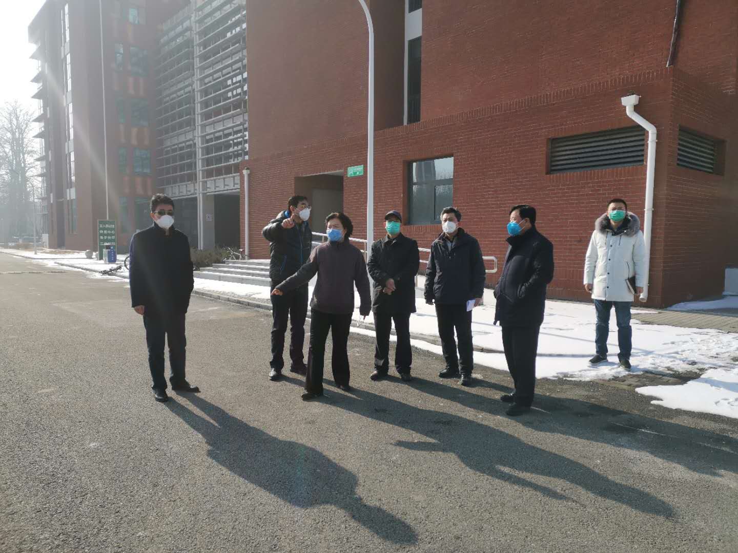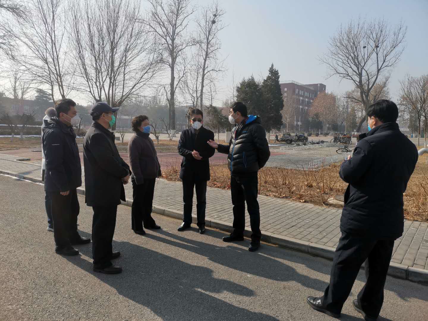 2月10日上午,市委教工委常务副书记郑吉春、干部处处长刘泳等一行就新冠肺炎疫情防控工作来校检查指导。校党委书记杨军、校长王慧敏、副校长张铁强简要汇报了学校疫情防控工作,就在校师生的管理、校门管控、入园企业的管理等重点工作进行了交流。
