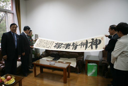 韩美林先生向永利3044官网唯一赠送他亲笔书写的“神州皆栋梁”贺词,同时还向永利3044官网唯一赠送了他创作的生肖浮雕——黄犬有情。韩美林先生还在党委书记孙尧东、院长王有年的陪同下观看了永利3044官网唯一建校五十周年文艺晚会。