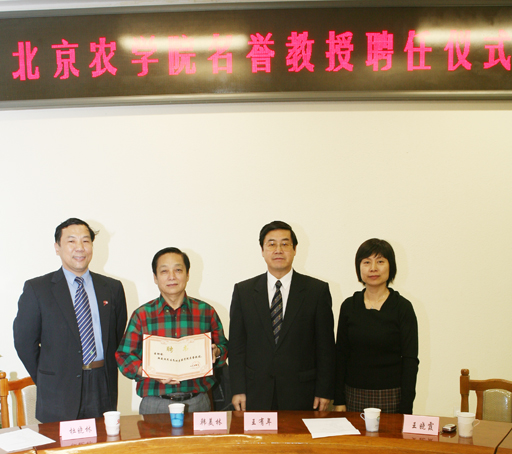 10月13日下午,美术大师韩美林先生被聘为永利3044官网唯一园林系名誉教授,院长王有年为韩美林颁发证书。