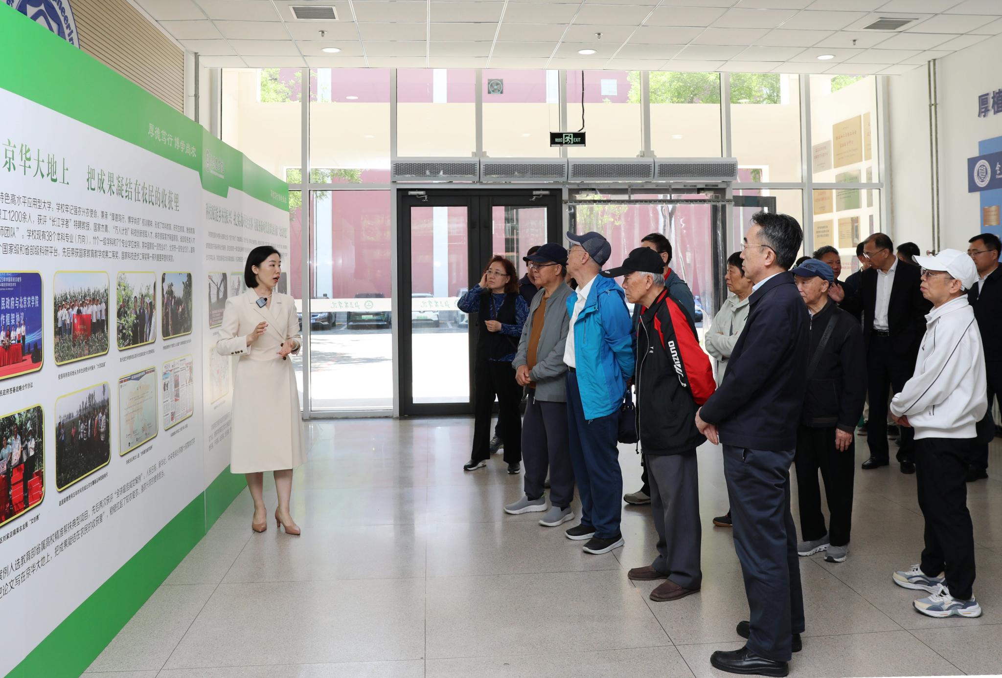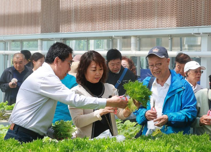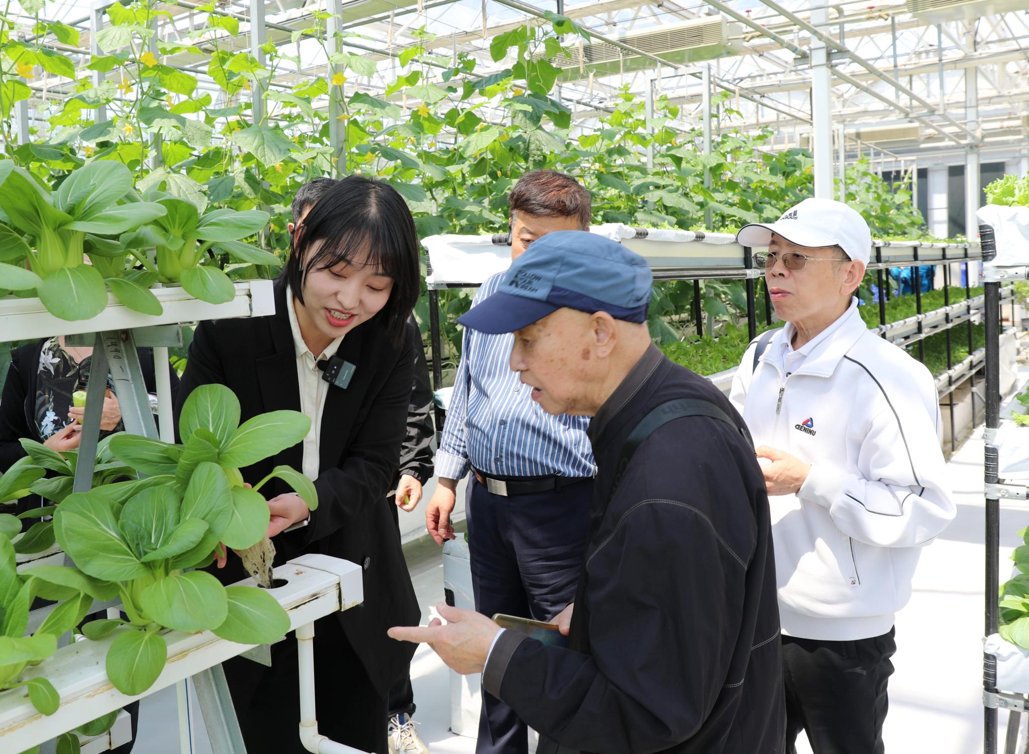 在学校植物生产国家级实验教学示范中心,老同志们现场参观了智能连栋温室,了解学校实践教学做法、劳动教育特色和师生服务乡村振兴的成效。