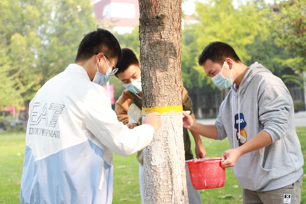 为树木涂白、杀菌防虫、保暖,帮助树木过冬,这些大多只在电视上看到过的场景,如今真实地出现在校园里,同学们成为了亲身参与者。