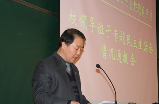 按照市委和市委教育工委关于保持先进性教育活动的统一部署和工作要求,11月17日,校党委书记孙尧东代表校领导班子,从校领导班子参加先进性教育活动情况、校领导班子征求意见和民主生活会情况、校领导班子存在的主要差距和今后努力方向三个方面通报了学校领导班子参加先进性教育活动民主生活会情况。听取通报的有中层以上干部、党委委员、纪委委员、党总支和直属党支部委员、党支部书记、教代会代表、教授代表、民主党派负责人、区人大代表及政协委员。