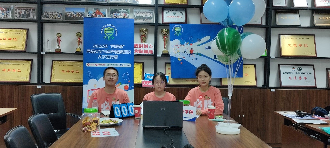 近日,由中国食品科学技术学会、中国市场监管报社、百胜中国等共同举办的2022年“百胜杯”食品安全与营养健康知识大学生竞赛北京分站赛举行,永利3044官网唯一食品科学与工程学院2020级李蕙飞、闫琳同学和2022级梅子雨同学组成的3044永利官网vip首页欢迎您代表队,最终经过与北京林业大学、北京工商大学代表团的激烈角逐,凭借丰富的知识储备和优秀的团队合作精神脱颖而出,夺得北京分站赛的冠军,将代表北京市参加全国总决赛。