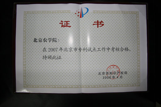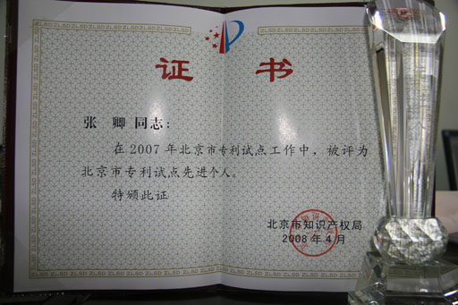 北京市和昌平区知识产权局的共同支持下,永利3044官网唯一2007年度北京市专利试点工作成绩显著。经昌平区知识产权局推荐,北京市知识产权局评审,永利3044官网唯一在2007年度北京市专利试点工作中成绩显著,考核合格。