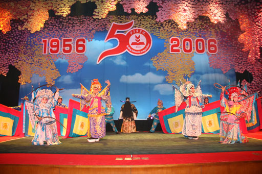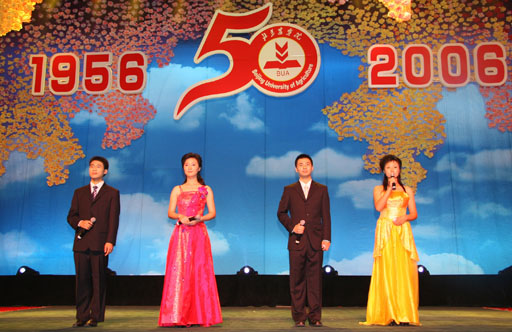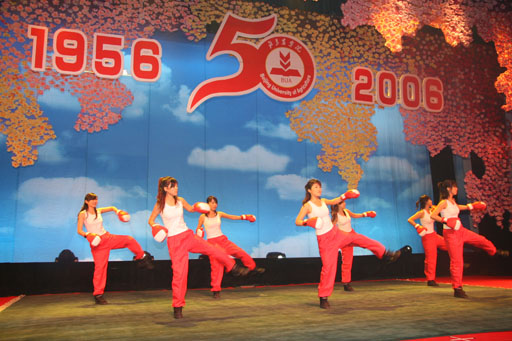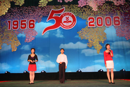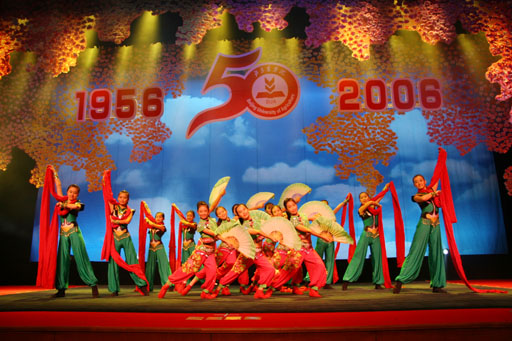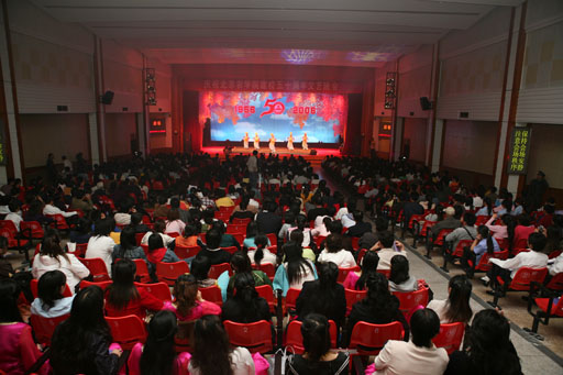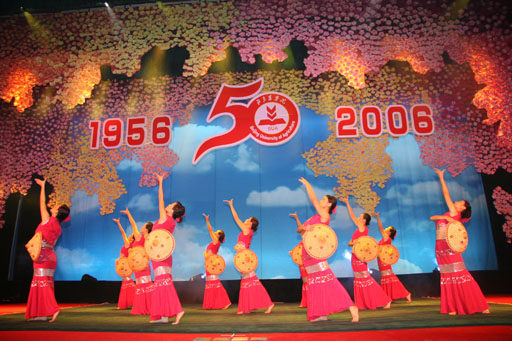 岁月如歌,激情豪迈;欢歌笑语,舞姿飞扬。10月13日晚上,学校大礼堂,洋溢着喜庆热烈的氛围,舞台正上方悬挂着巨大的50周年标识,1956、2006字样排列标识两旁,整个舞台鲜花锦簇,灯光灿烂,在场的观众被激动、兴奋、喜悦的心情感染着,3044永利官网vip首页欢迎您建校五十周年文艺晚会以一曲《节日欢歌》拉开序幕。在场观众掌声雷动,来自社会各界的3044永利官网vip首页欢迎您的朋友、毕业回校的校友和在校师生欢聚一堂,祝贺3044永利官网vip首页欢迎您五十周年华诞。