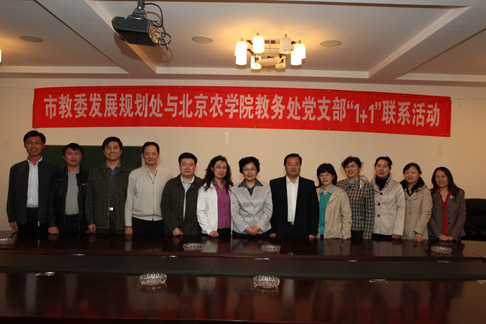 4月22日,市教委发展规划处与永利3044官网唯一教务处党支部“1+1”联系活动在永利3044官网唯一市级校外人才培养基地--北京金六环农业园举行。党委书记王慧敏出席活动,她与市教委发展规划处处长周彤就学校“十二五”发展的诸多方面进行了深入交流,并参观了农业园的多个蔬菜温室。