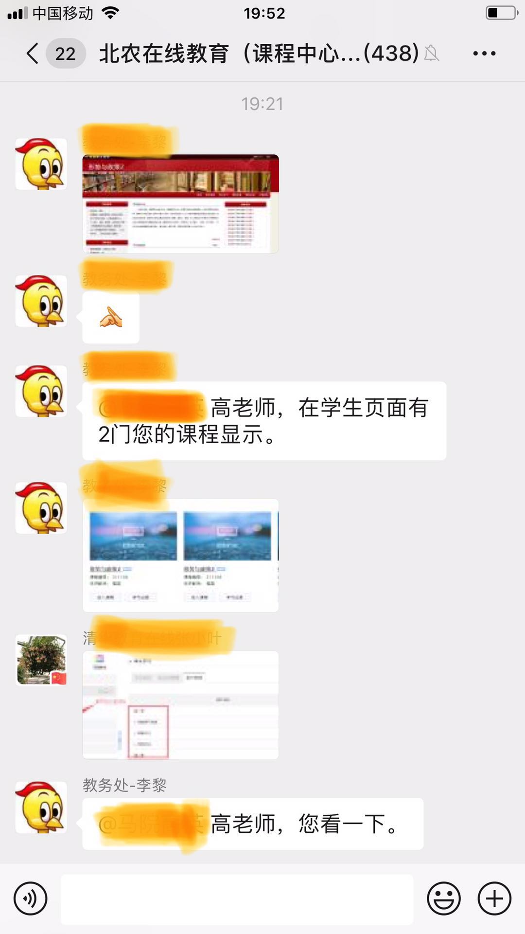 为降低疫情对教学活动的影响,学校前期做了充足的准备。这学期学校共有557门课程实施远程教学,所有课程都建立了包括任课教师和选课学生在内的课程微信群。有259门课程通过学校的课程中心平台开展远程教学,221门课程通过课程中心平台和其他平台结合的方式开展远程教学。老师们通过课程中心,精心制作专属课程的主页,上传课程课件、设置讨论交流、布置作业、制作在线测试……功能强大,基本满足了教学要求和在线教学形式多样化的特点。相比较传统教学,无限次回访和强大的数据统计功能,让老师们欣喜不已,纷纷表示将来回归正常教学后,也要将网络教学融入其中。教务处为教师们搭建了线上教学问题讨论群,所有任课教师入群,实时在线讨论网络教学中的各种问题,交流经验和心得体会。这个微信群大概是近三周北农教师手机里最火爆的群,从早到晚信息不断,稍不留意,就是几十条未读信息。