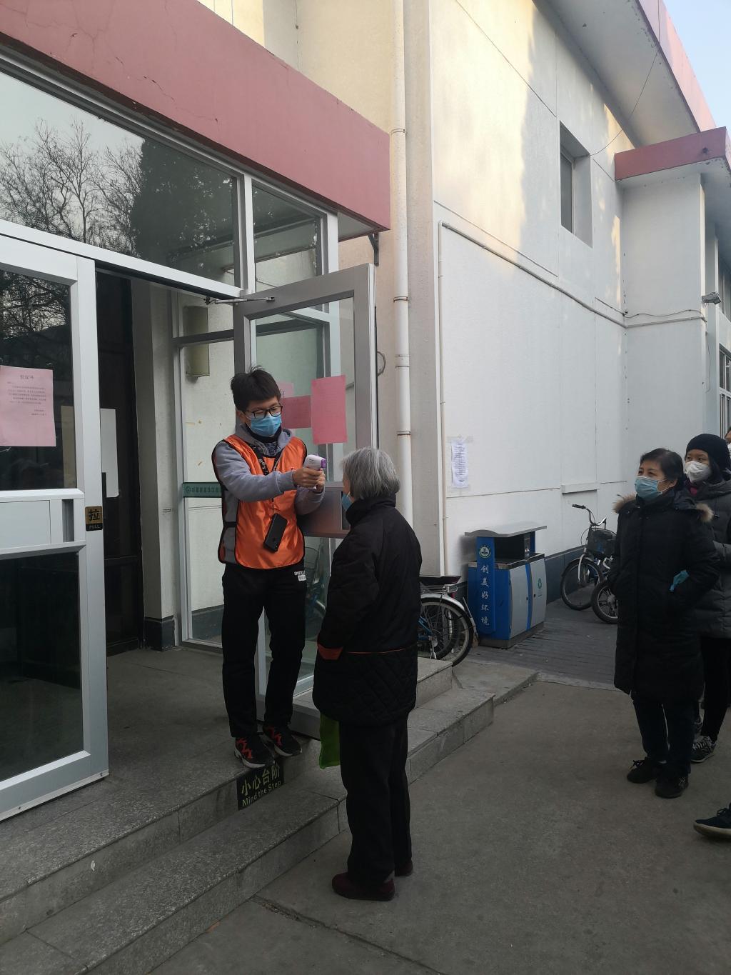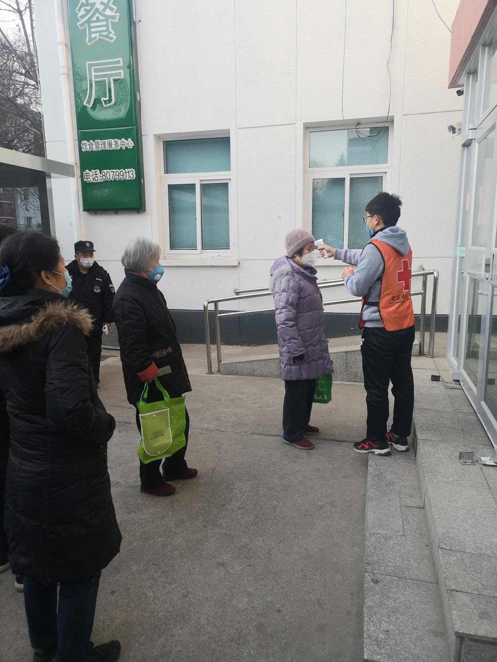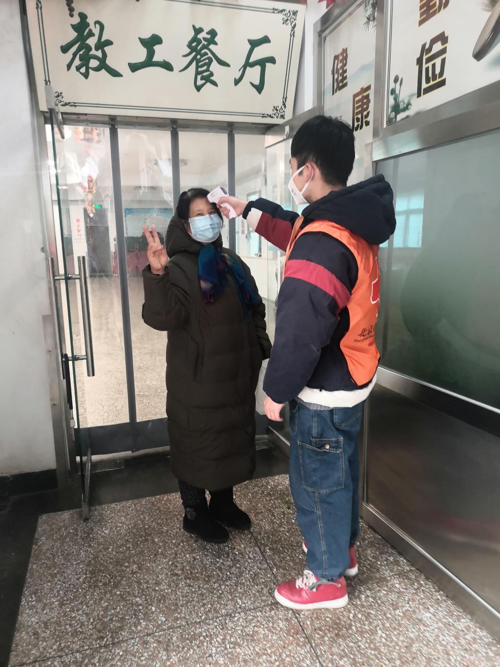 今天早晨,来食堂就餐的师生发现,在食堂门口,学生志愿者手持温度测量机为所有就餐者测量体温,并要求就餐者必须携带好口罩方能入内。这是学校采取的新举措。为了更细致做好防疫工作,学校决定在食堂门口增设测体温环节,不戴口罩者不准进入食堂。所有进入食堂就餐的人员需接受学生志愿者的体温测量。