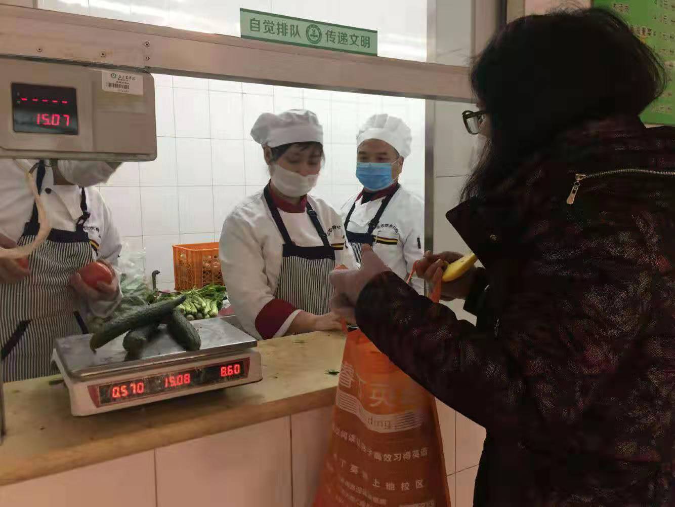 上午不到9点,在教工食堂门口,许多戴着口罩的教师排起长队,他们是来这里购买蔬菜的。师生对学校这一举措纷纷点赞,他们表示,来这里购买蔬菜,既方便又安全,解决去超市、菜市场购买蔬菜的后顾之忧。这也是学校为做好疫情防控工作采取的另一举措:为部分师生平价供应蔬菜和调料。