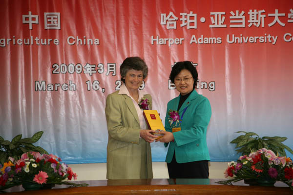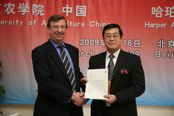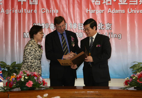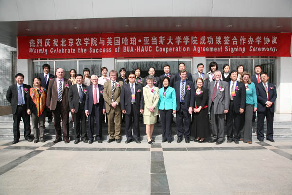 英国哈珀亚当斯大学学院代表团一行8人、学校有关职能部门的负责人出席了签字仪式。