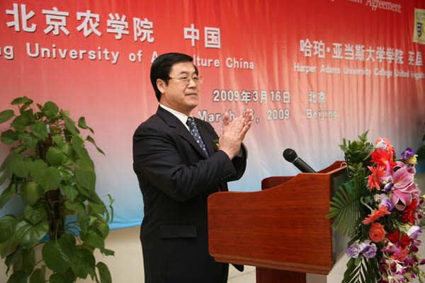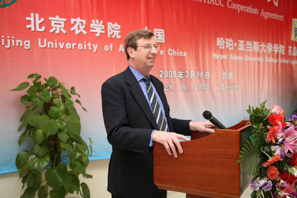 签字仪式上,校长王有年首先代表全校师生员工对哈珀亚当斯大学学院一行的朋友表示热烈的欢迎。在简要介绍了学校的发展情况后,他说,两校校际间的合作往来不断增多,“