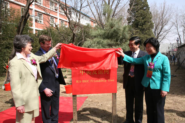 两校领导为“中英友谊树”揭牌
