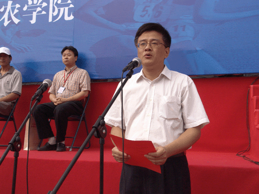 王有年院长致开幕词,他代表承办单位对支持和出席本次运动会的各级领导和兄弟院校的来宾表示衷心的感谢和热烈的欢迎,希望在运动会中,裁判员严格执法,运动员充分发挥水平,赛出成绩,赛出风格。