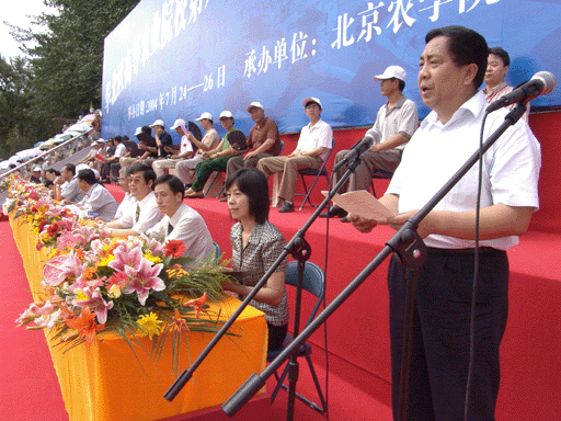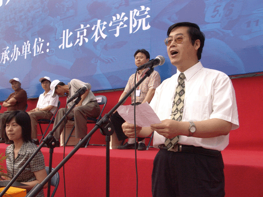 北京市教委副主任、本届运动会组委会名誉主任杜松彭同志致贺词,他在祝贺本次运动会顺利召开的同时,也希望运动员们以优异的比赛成绩和良好的道德风貌充分展示当代大学生的风采,同时通过本次运动会加强各农业院校之间的了解和交流。