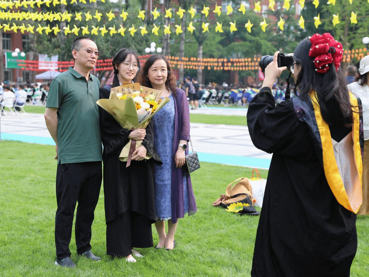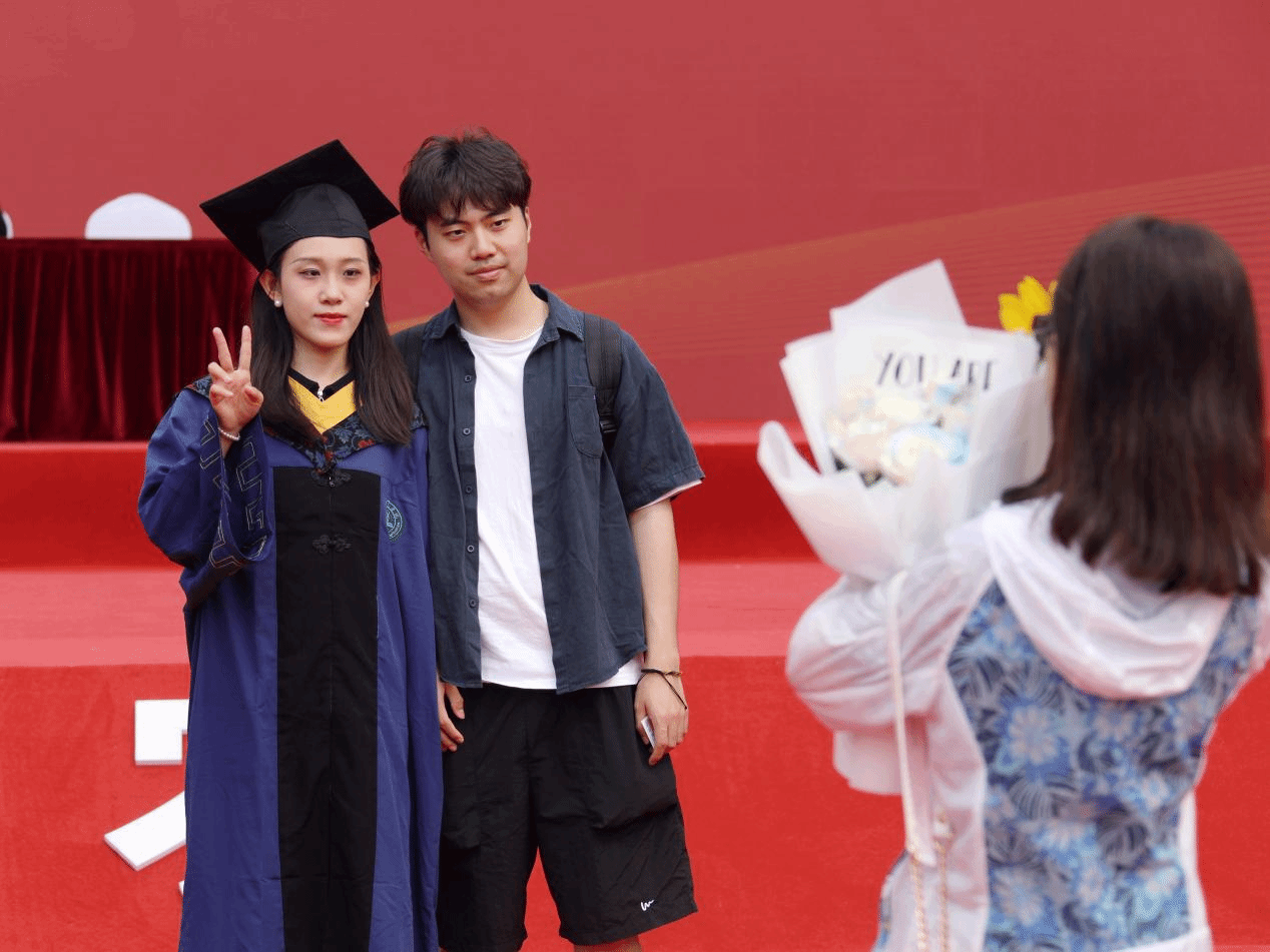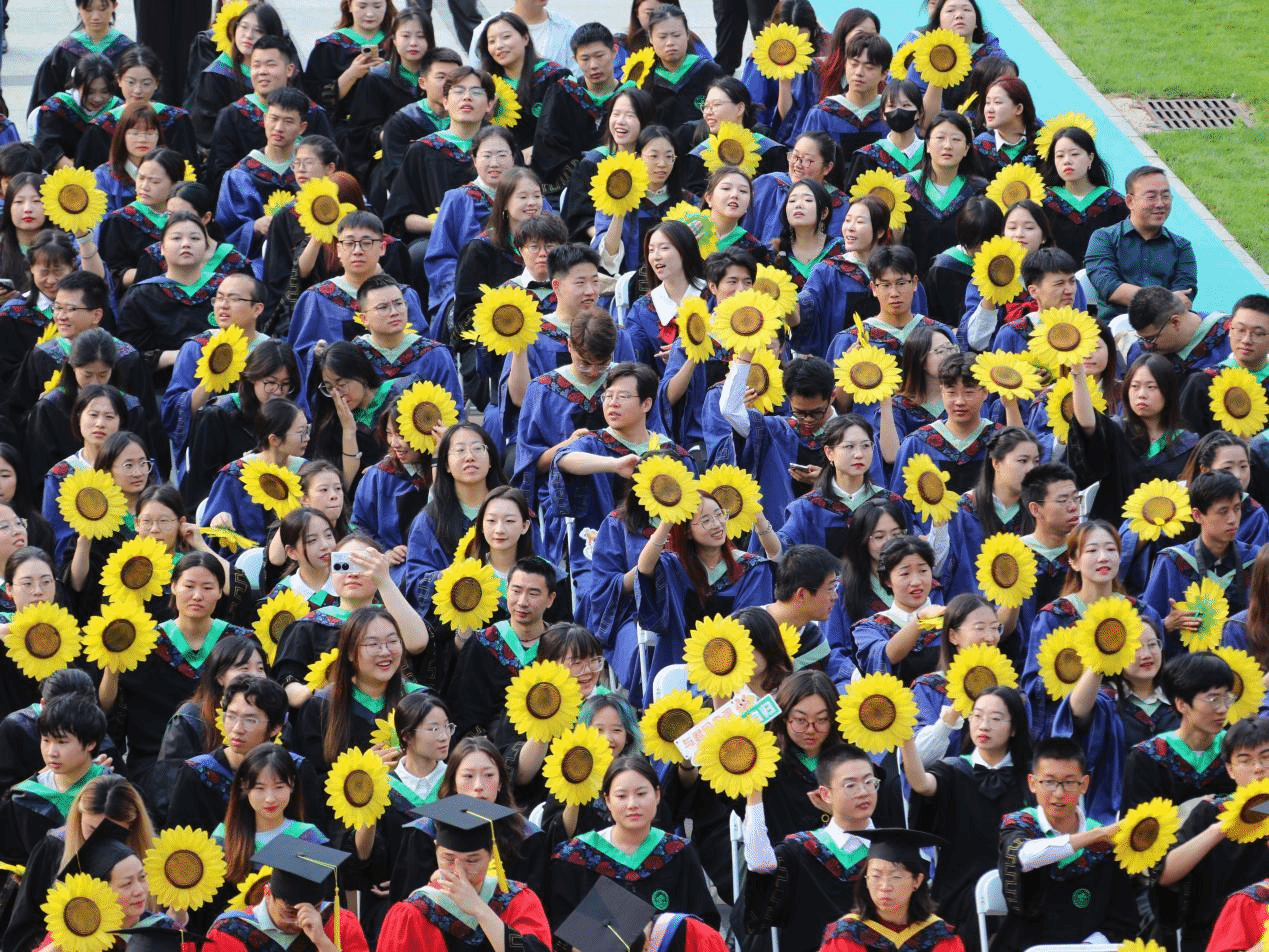 毕业生家长、导师、班主任和辅导员、宿管阿姨、医护人员、保安员代表一一为毕业生送上暖心祝福。毕业生代表向他们献花,感谢父母和全体教职员工的悉心照料、辛勤付出,表达对他们的感恩和爱戴之心。