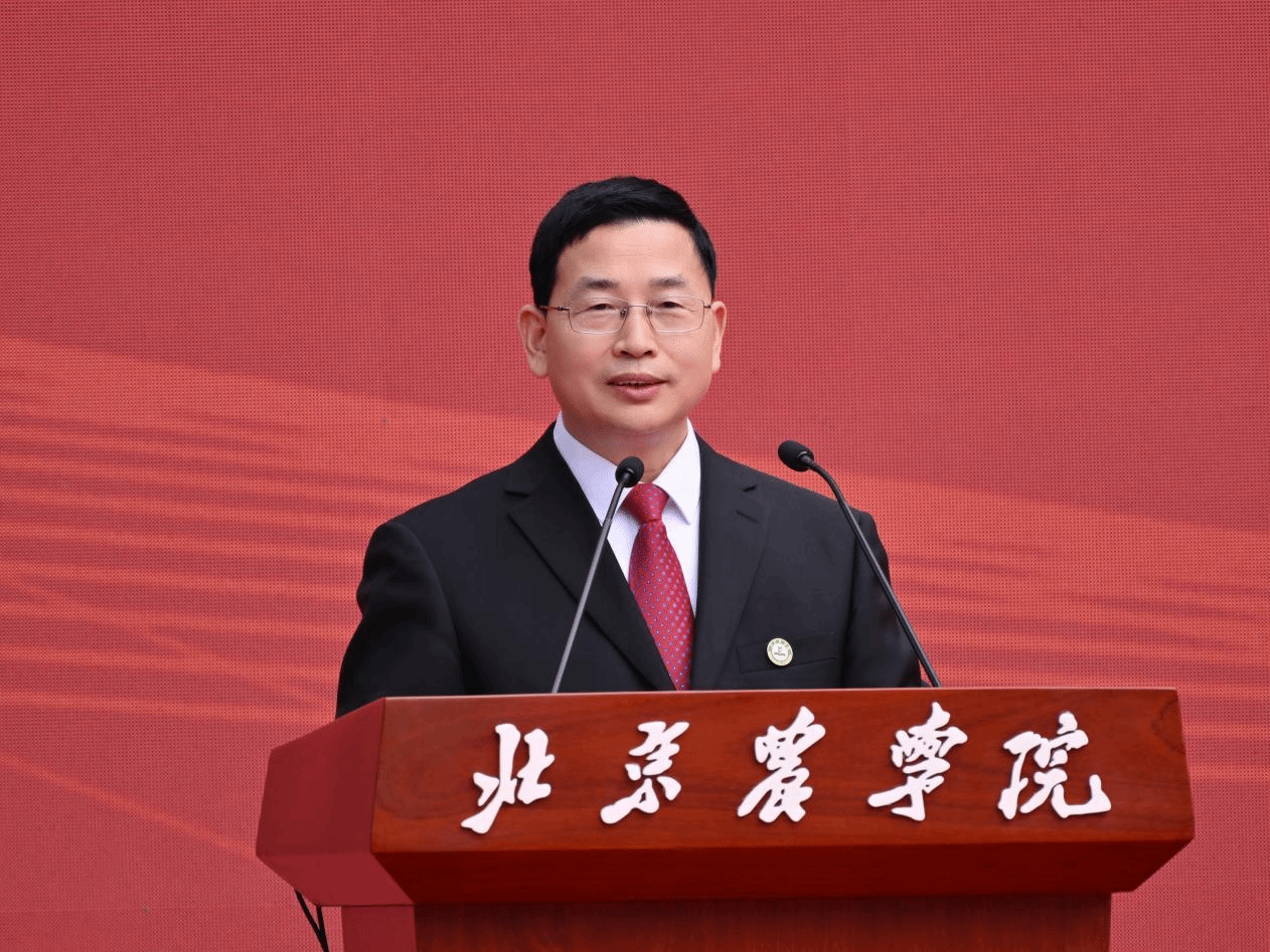 校友代表、中国科学院动物研究所·国家动物博物馆馆长张劲硕回忆了在北农求学的经历,感谢母校的培养与熏陶,为学校全面服务首都乡村振兴与京津冀协同发展,大力培养知农爱农新型人才点赞。他勉励大家要心怀感恩、终身学习,勇于面对挑战,树立开放合作的心态,像天鹅、鸿雁一样飞得高、看得远,志在千里、成就非凡。