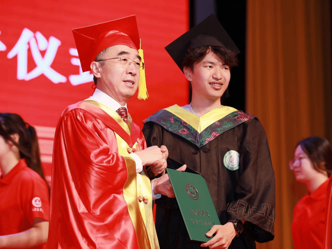 本科生毕业生代表、生物与资源环境学院郜乾代表同学们感谢学校四年的精心培养和老师们的悉心教导。“是学校教会我知识,锤炼了我的品格,给予我无限的支持和鼓励,让我有勇气面对挑战,继续前行。”他表示,今后将继续专注走好人生每一步,以更加饱满的热情和坚定的信念,迎接未来的挑战,创造属于自己的辉煌。
