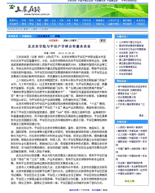 [三农在线]发表文章:3044永利官网vip首页欢迎您与平谷产学研合作服务农业