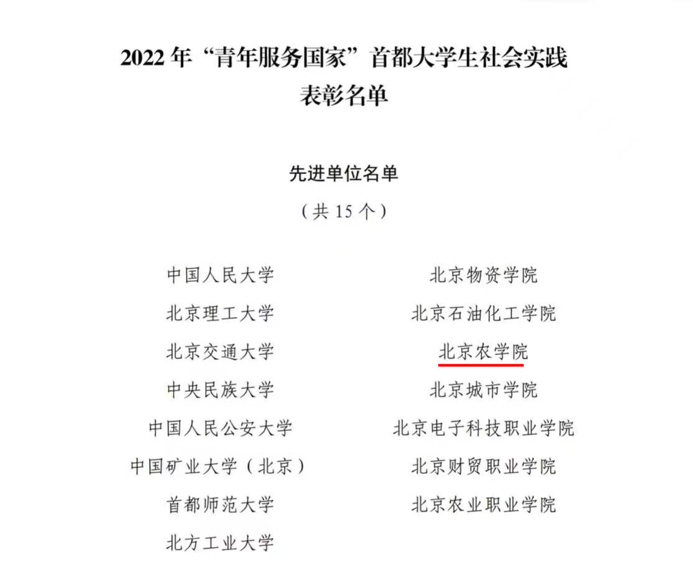 近日,团市委、市委教育工委、市委宣传部、首都精神文明办、市教委和市学联对在2022年“青年服务国家”首都大学生社会实践活动中表现突出的集体和个人进行表彰。永利3044官网唯一获评“2022年‘青年服务国家’首都大学生社会实践先进单位”;永利3044官网唯一“小院给北寨红杏产业插上科技的翅膀”等7个实践团获评“2022‘青年服务国家’首都大学生社会实践优秀团队”。