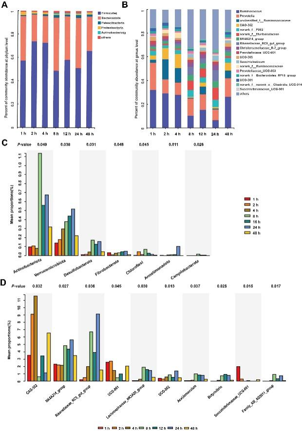 图1.48小时内柑橘提取物附着的的瘤胃细菌动态变化