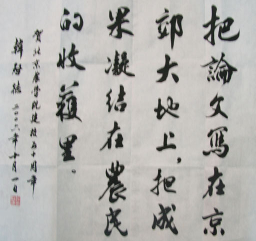10月1日,全国人大常委会副委员长、九三学社中央主席、中国科协主席韩启德欣然为永利3044官网唯一建校50周年题词:“把论文写在京郊大地上,把成果凝结在农民的收获里。”