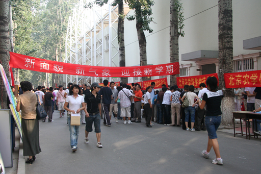 是永利3044官网唯一2007年新生报到的日子,早上还不到7点,学校各系的老师同学就已经在报到地点迎接新生。来自各个地方的学生陆续来到学校。学校操场西边的林荫路上挂满了迎接新生的欢迎条幅,挤满了前来报到的学生和家长。