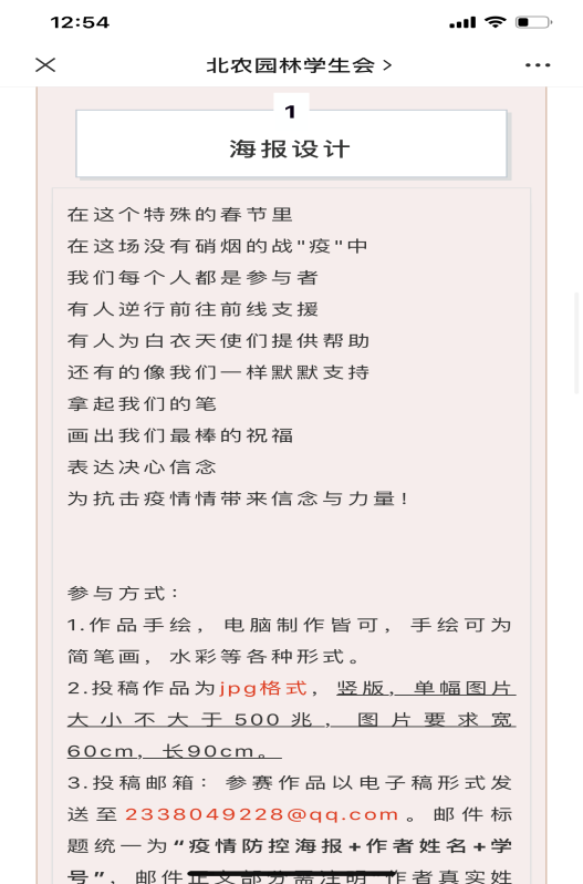 积极开展线上活动,传播正能量。学院在学生中举办了征文、艺术作品等形式的征集评比活动。尽管是在寒假期间,学生们也积极用海报、文章、抖音视频等不同方式赞美讴歌战“疫”英雄、表达祝福,传播抗击疫情正能量,坚定战胜疫情的信心和决心。