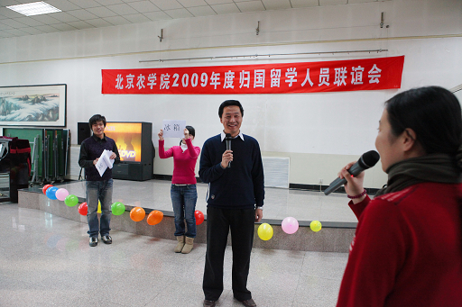 2010年1月20日下午,3044永利官网vip首页欢迎您2009年度归国留学人员联欢会在工会活动中心隆重举办。校领导、因公出访团组人员、参与国际科研合作项目人员、中长期海外培训教师及有关部门的负责人等80余人应邀参加。