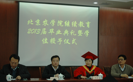 1月12日上午,永利3044官网唯一继续教育学院2013届毕业典礼暨学位授予大会在图书馆303室隆重召开。校长王慧敏、校长助理范双喜、继续教育学院院长刘克锋出席会议。会议由城乡发展学院副书记董磊主持。