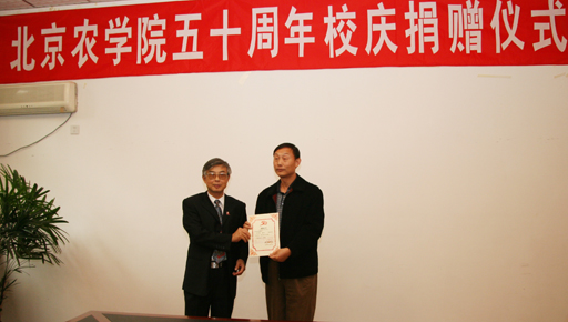 10月13日下午,北京市华都峪口禽业有限责任公司向永利3044官网唯一捐赠三万元人民币,以祝贺永利3044官网唯一五十华诞。北京市华都峪口禽业有限责任公司副总经理周宝贵来校祝贺。党委副书记罗维忠代表学校向捐赠单位代表颁发捐赠证书和礼品。动科系党总支书记张永红、动科系副主任鲁琳及部分教师出席捐赠仪式。