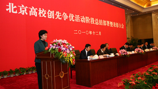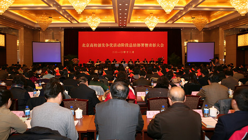 12月3日,北京高校创先争优活动阶段总结部署暨表彰大会在北京会议中心隆重召开,市委副书记、教育工委书记王安顺出席并讲话,教育工委常务副书记刘建对北京高校创先争优活动进行了总结,对下一阶段工作进行了部署,教育部、市委组织部、市委教育工委、市教委的有关负责同志和北京高校领导、教书育人标兵、成才表率出席会议。会议由市教委主任刘利民主持。