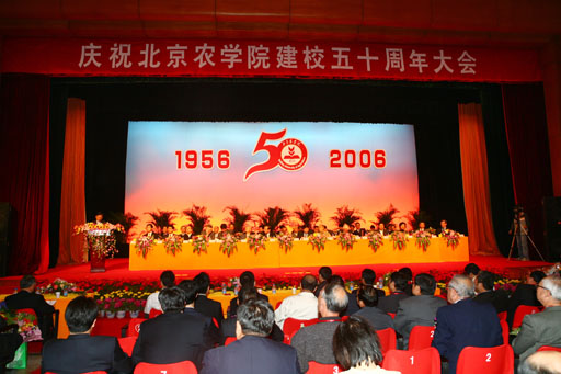 9点45分,在欢快的乐曲中,校庆大会正式开始。各位领导嘉宾就座主席台,出席大会的有:全国人大常委、人大农业与农村工作委员会副主任委员舒惠国;中共北京市委副书记、纪委书记、政法委书记强卫;全国政协常委、政协经济委员会副主任洪绂曾;北京市人大常委会副主任赵凤山;原科技部副部长、中国农学会副会长韩德乾;原中国工程院副院长卢良恕院士;原北京市副市长、北京工业大学校长范伯元;中国农业大学党委书记瞿振元中国园艺学会理事长方智远院士;北京林业大学校长尹伟伦院士;中共北京市委农村工作委员会书记杨德宏北京市人民政府农村工作委员会主任李进山;中共北京市委教育工作委员会常务副书记张建明;北京市人民政府教育委员会副主任张国华;英国哈珀亚当斯大学学院校长琼斯。