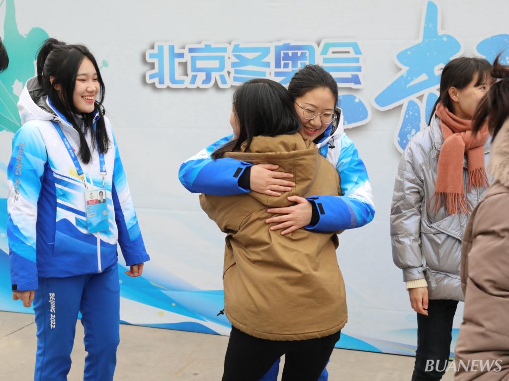 国际学院解彬菲同学说:“老师们一句句的嘱托,一次次的拥抱,都让我感受到了家的温暖。这次离‘家’,带着‘大家长’的鼓励,我们定会保证自身安全,完成冬奥志愿服务工作,四月凯旋归来!”