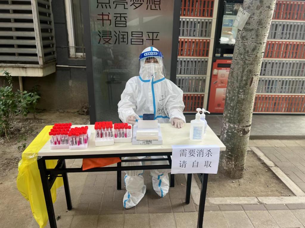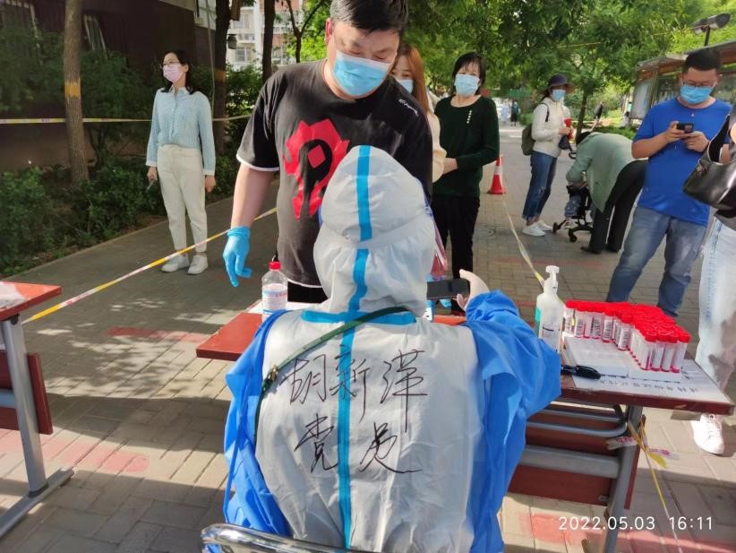 教师工作部徐月多次参加社区防疫工作,协助核酸检测工作人员进行身份证信息采集、秩序维持,协助物业在小区门口引导居民扫码和测温。文法与城乡发展学院教师党员胡新萍也投入到核酸检测和小区值守工作中。虽然身穿两层防护服,头戴防护帽,紧捂口罩,坐在烈日炎炎下,她丝毫未曾退缩和动摇。她说:“作为党员我要做出自己一份努力,相信在党的领导下,我们携手努力终将战胜疫情!”继续教育学院于娟在多次参与社区疫情防控志愿服务后说:“通过志愿服务真正体会到一线医护人员的艰辛,作为一名党员,能够帮助他人,贡献自己的一份力量,感到很自豪”。