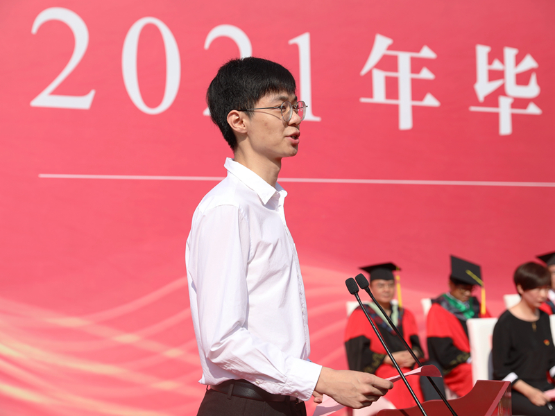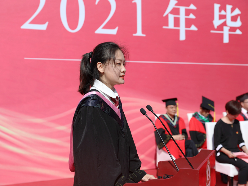 毕业生代表、经管学院本科毕业生杨楝发言时表示,在四年成长的路上,无论是学业成绩提高还是综合素质提升都离不开老师的悉心培养、家长的支持奉献和同学的热心帮助。未来将心无旁骛,保持专注,勇于担当,追求卓越,与时俱进,敏而好学,在广袤的田地上耕耘出美好的未来。祝福母校“春播桃李三千圃,秋来硕果满神州!”