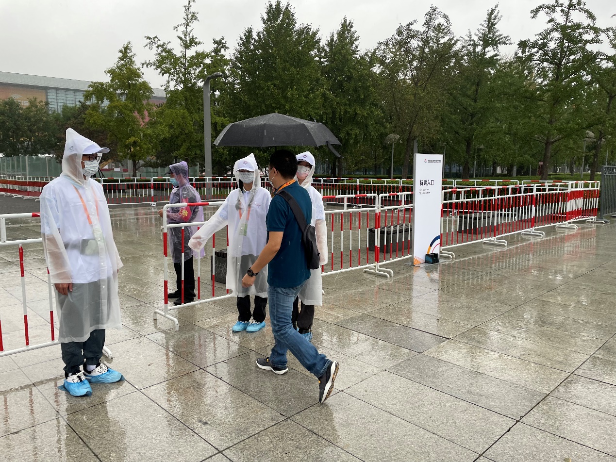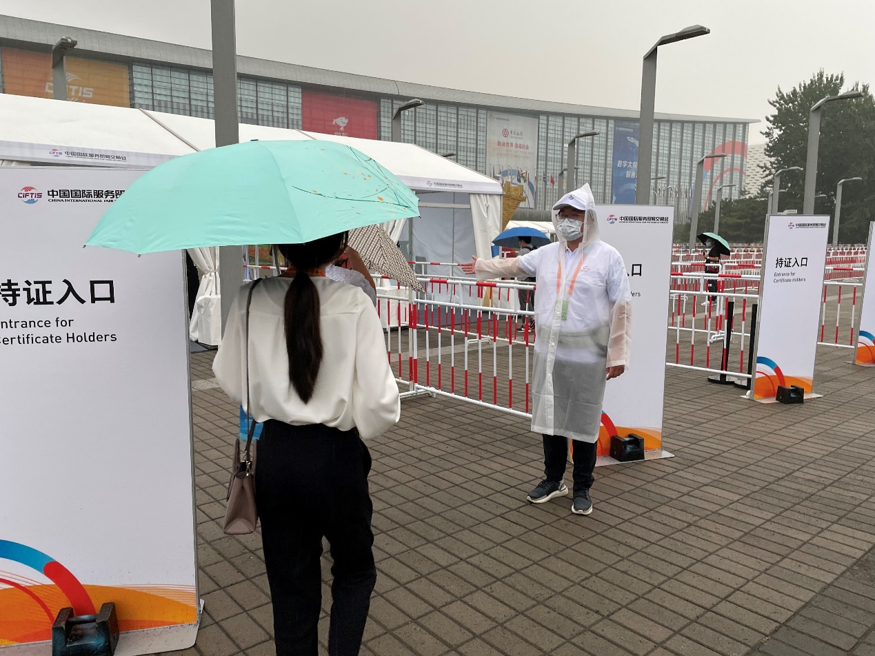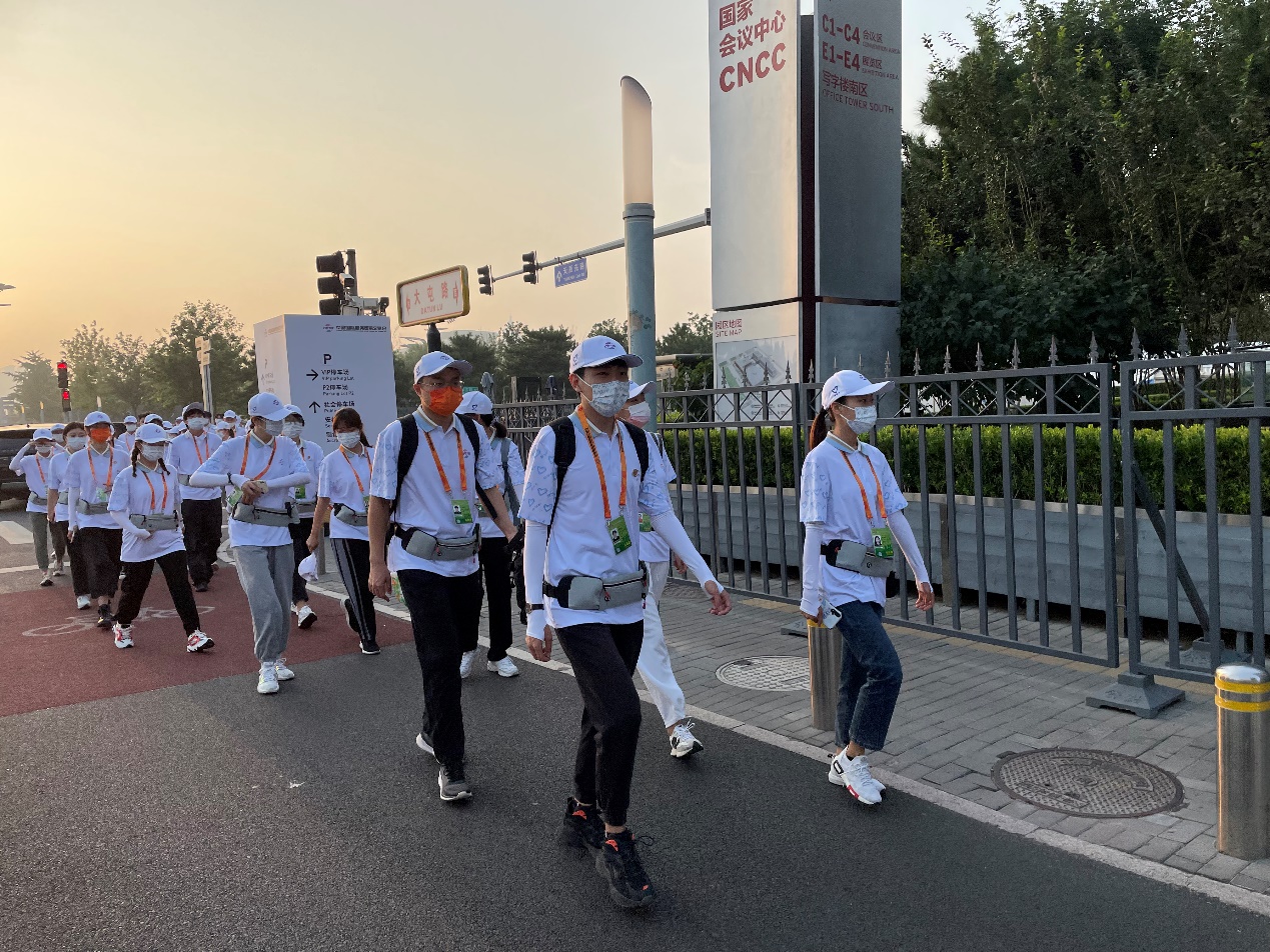 上岗期间天气变化莫测,多雨天气多发,志愿者披星戴月、顶风冒雨,有的志愿者晒黑了,有的志愿者嗓子嘶哑了,有的志愿者衣服淋湿了,但是大家坚持上岗服务,用最美的微笑、最贴心的服务,再次擦亮北京志愿者“金名片”。中央政治局委员、市委书记蔡奇同志在视察工作中称赞道“志愿者是服贸会一道靓丽的风景线”。