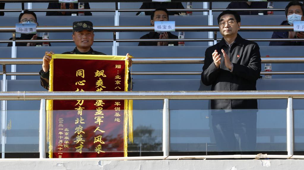 他代表学校向北京八达岭军训基地领导以及承担军训任务的全体教官表示衷心感谢。他指出,全体教官在军训中严格按纲施训,过硬的军事素养、严明的纪律、训练中不达目标不罢休的精神,让军训取得了良好效果。军训期间,同学们学习了军事技能,增强了身体素质,磨练了意志品质,培养了团结协作精神,形成了良好的纪律观念。同学们要在今后的学习、生活中,继续保持军训期间的优良作风,将攻坚克难的精神品质转化为认真学习、成长成才的强大动力。他向同学们提出三点希望:一要立大志、明大德,矢志不渝跟党走。要牢记军训中学到的党史教育和国防知识,坚定信心,立大志、明大德、学本领,努力成为堪当民族复兴重任的时代新人。二要坚持自强自律,锤炼意志品质。要把军训中养成的不怕苦不怕累的作风保持下去,发扬军训的优良传统和作风,在实践中主动锻炼自己,在奋斗中锤炼意志品质,成为自强自律、坚忍不拔、心中有爱、眼里有光的青年人。三是厚德笃行,勤奋求学。要深刻体会校训的内涵,脚踏实地,实学实干,在专业学习中深耕,练就过硬本领,在北农的沃土上成长为综合素质高、实践能力强、具有创新精神的北农人。