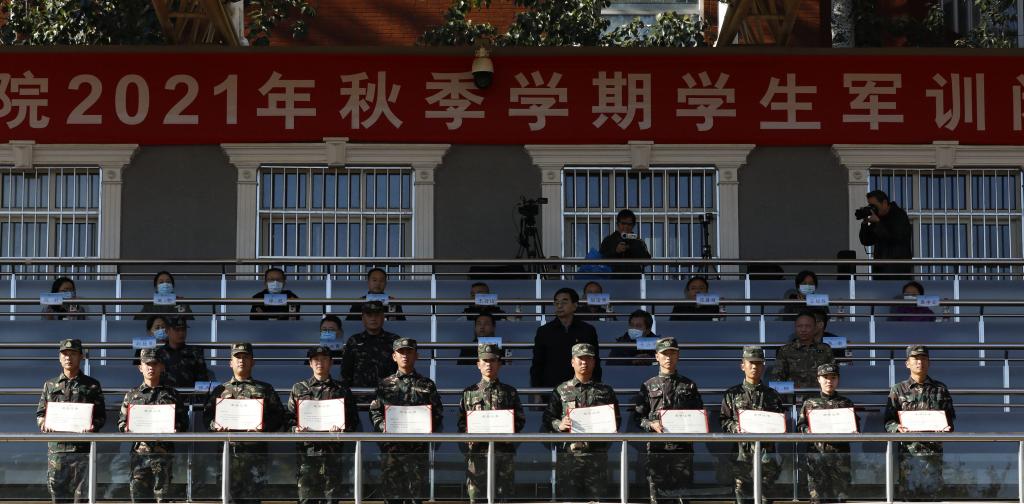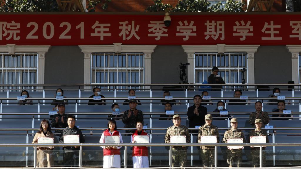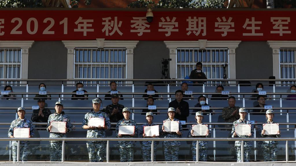 学生处处长、武装部部长刘柳宣读优秀个人表彰决定,希望同学们向优秀教官、优秀教师和优秀学员学习,将军训中表现出的优良作风带到今后的学习和生活中,再创佳绩、再立新功。主席台领导为优秀教官、优秀教师、优秀学员代表颁发证书。