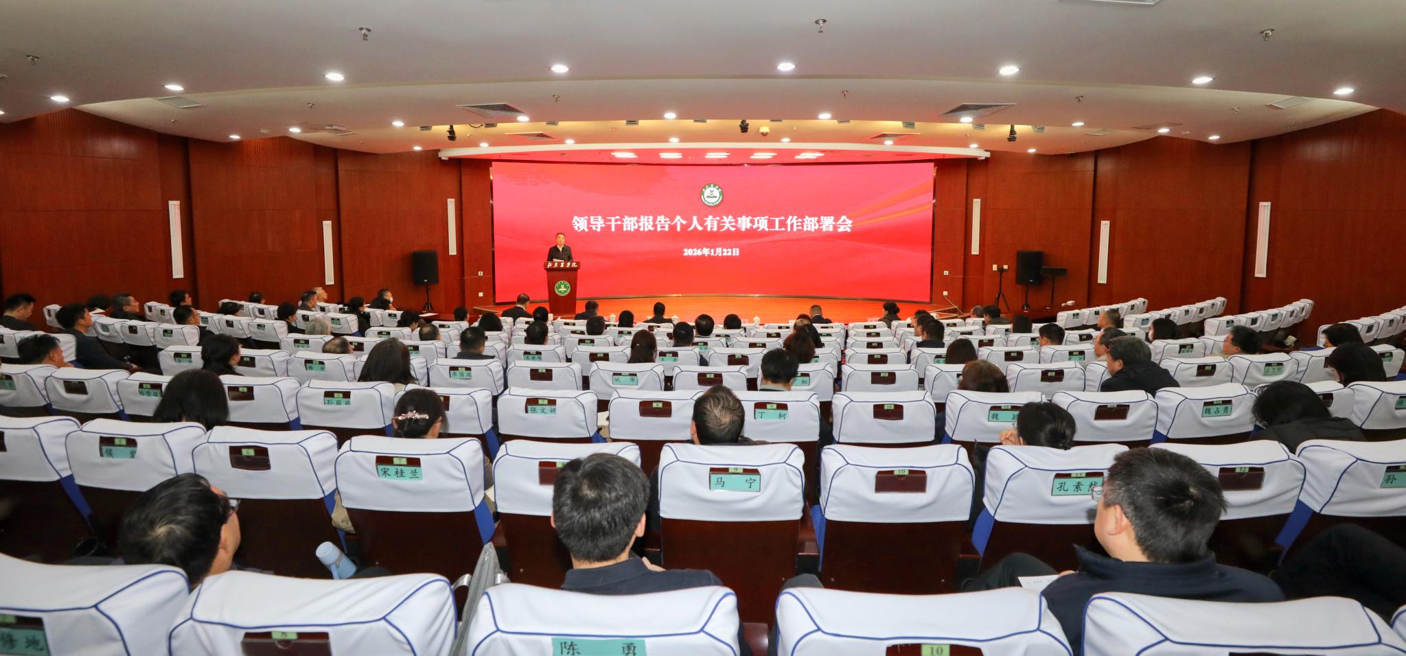 1月22日,学校召开领导干部报告个人有关事项工作部署会。党委书记赵锋出席会议并讲话,党委副书记仲丛生主持会议。