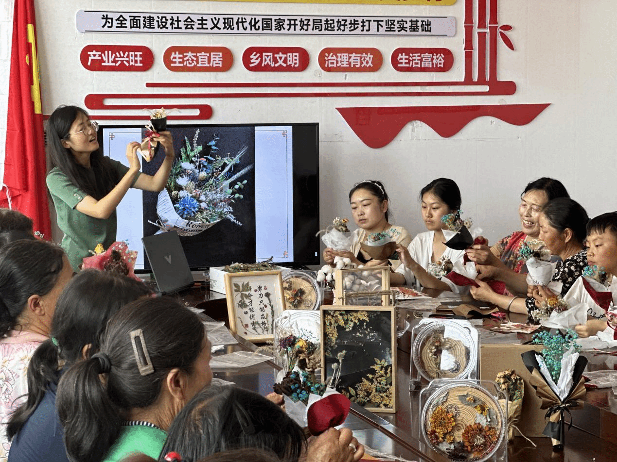 他们将目光聚焦于岚县的乡村旅游和一年一度的“土豆花开”文化节活动,深入挖掘王家村的文旅资源,打造特色文旅产品。而“卖土豆花”这一创意举措,正是他们智慧的结晶。针对中小学生开展了“寓教于乐”的特色研学活动,集“科学性、艺术性、实践性”于一体,以土豆花及岚县王家村乡土植物为素材制作特色干花文创作品,在亲手制作压花作品的艺术体验当中,了解乡村特色植物文化及科学知识,为学生们上了一堂生动的“知农、爱农、学农”暑期实践课。针对王家村村民,从干花植物材料选择、花材采集、处理、制作,以及不同形式干花产品创作等方面进行了系统的技术培训,使参加培训的村民们掌握了干花产品研发的相关技术,研创出深受游客喜爱的干花作品,并结合当地文旅实现了新形式的创收。同时,CCTV-17对永利3044官网唯一师生发挥学科专业优势,以“土豆花”创新模式助力乡村振兴的做法进行直播报道。