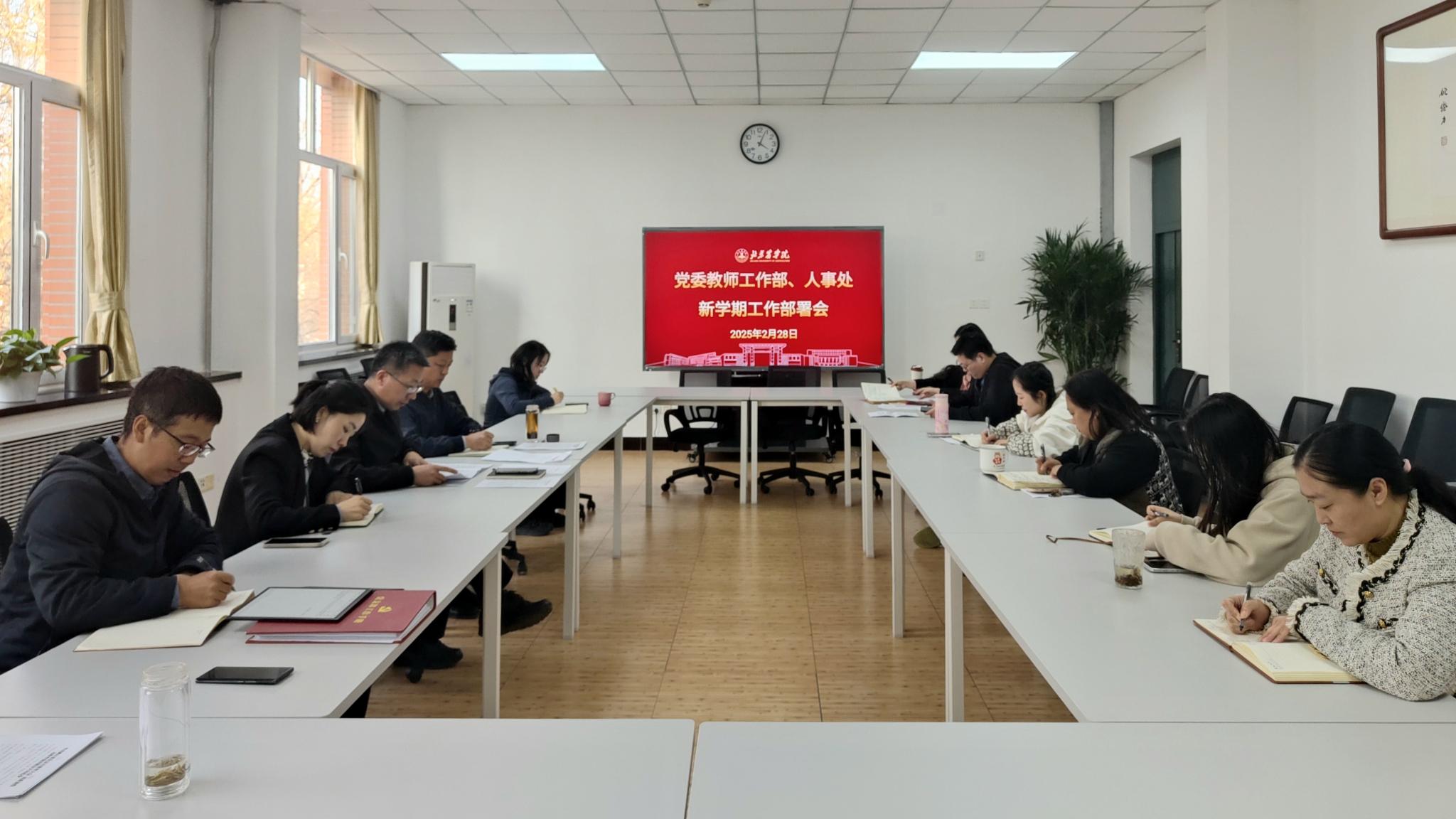 2月28日,党委教师工作部、人事处召开新学期工作部署会,专题传达学习学校党委四届四次全会和2025年工作部署会精神,研究落实举措。会议由党委教师工作部部长、人事处处长刘铁军主持。