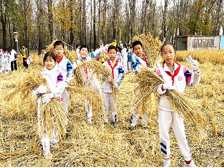 五年级同学体验京西稻收割