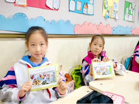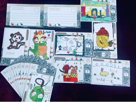 一年级同学手绘的动物主题明信片
