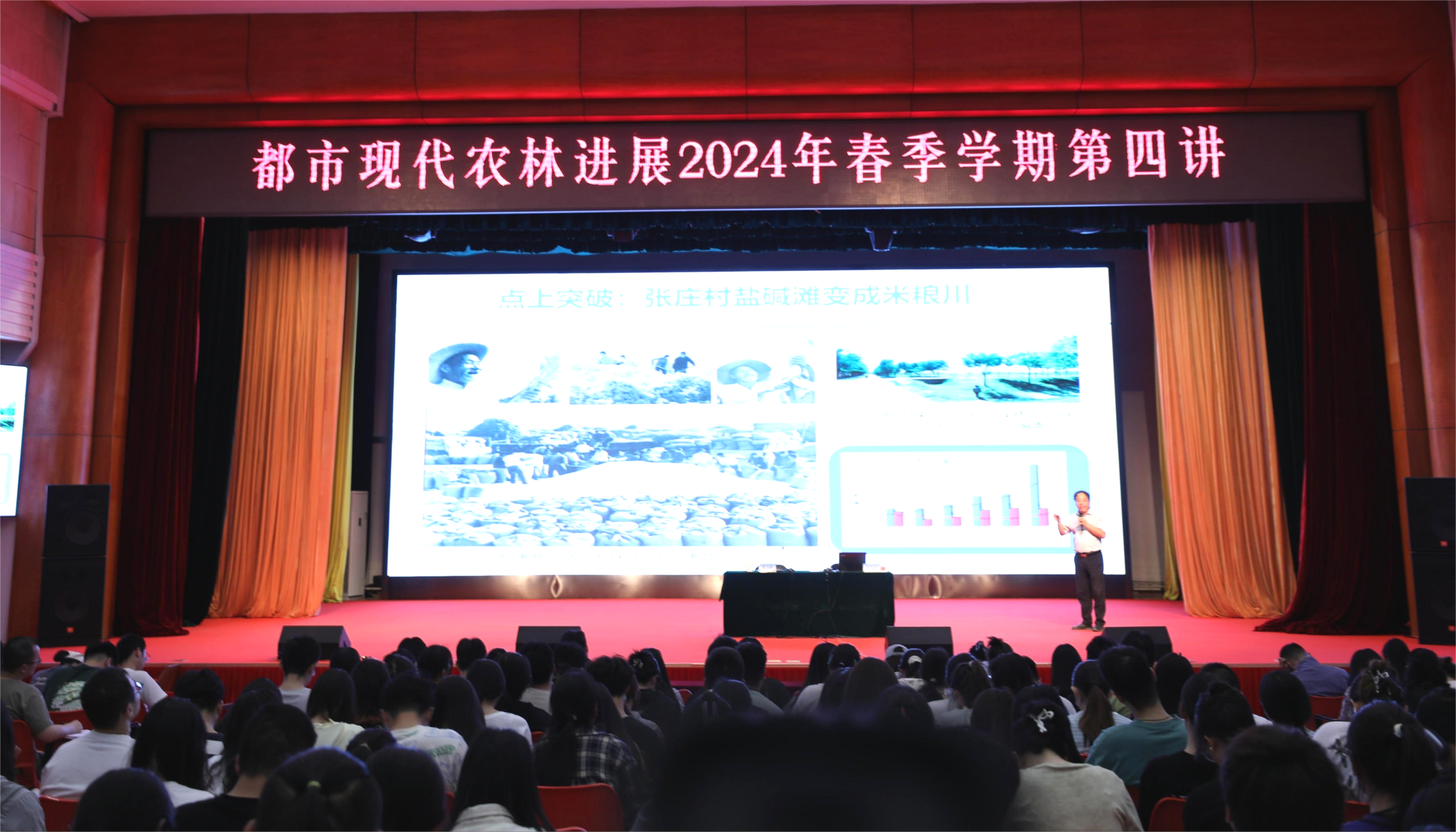 5月14日下午,“都市现代农林进展·科技小院专场”讲座在学校礼堂举行,特邀中国农业大学教授、曲周实验站副站长张宏彦带来“扎根祖国大地,在解民生、治学问中成长成才”精彩讲座。全体2023级全日制硕士研究生、研究生导师、研究生院相关人员、各学院研究生秘书等参加了讲座。讲座由研究生院副院长薛飞燕副教授主持。