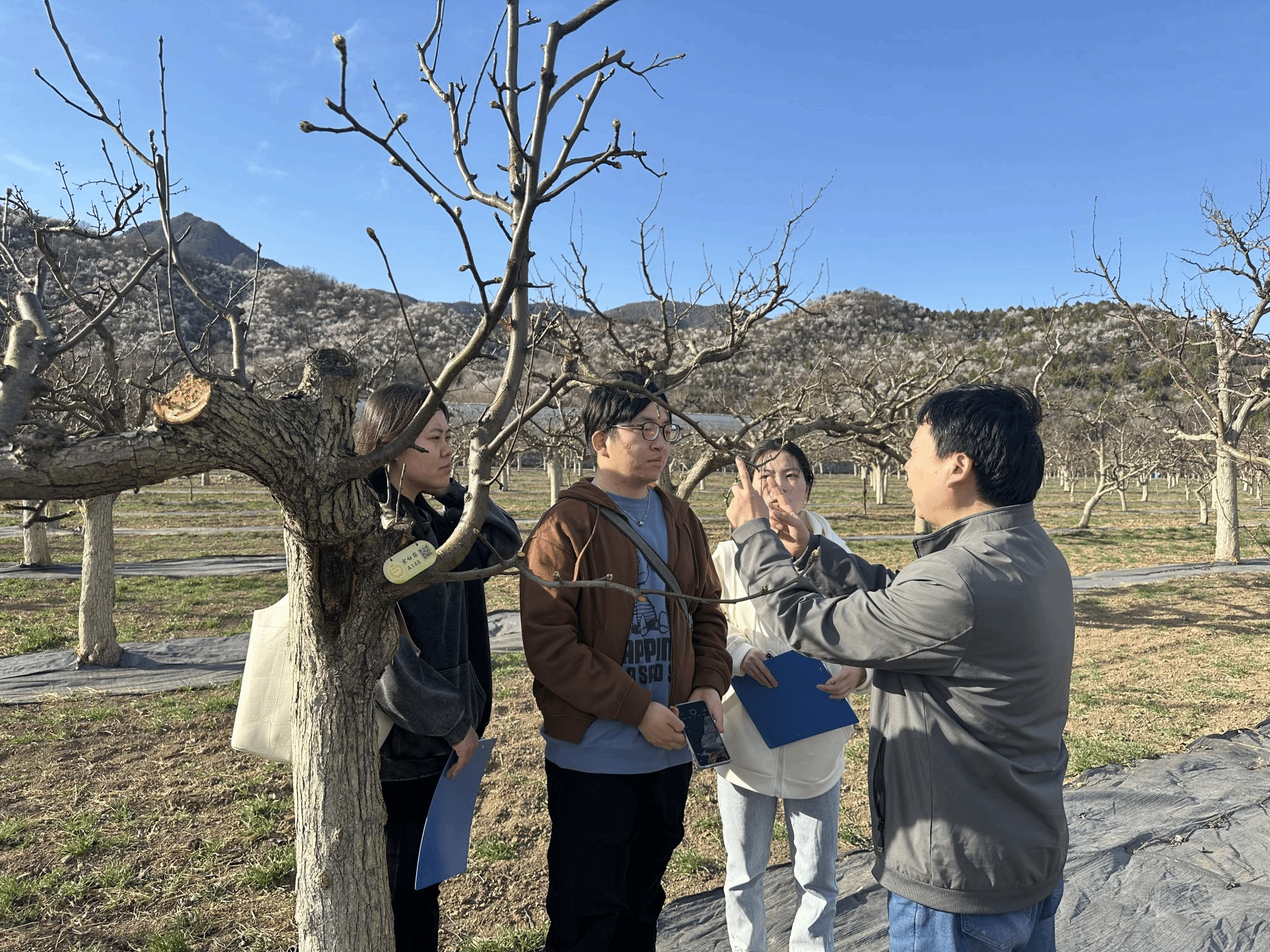 “现在梨木虱虫口密度在中果园中较大,需要抓紧处理,以防对梨树生长造成更大影响。”清明前后,气温骤升,正是梨木虱越冬成虫出蛰的时候,任争光副教授带领植物医院工作坊的师生们分别对门头沟孟悟现代农业科技示范园与“梨”享田园的梨木虱发生情况进行了调查,针对京白梨进行春季梨树病虫害防治工作。