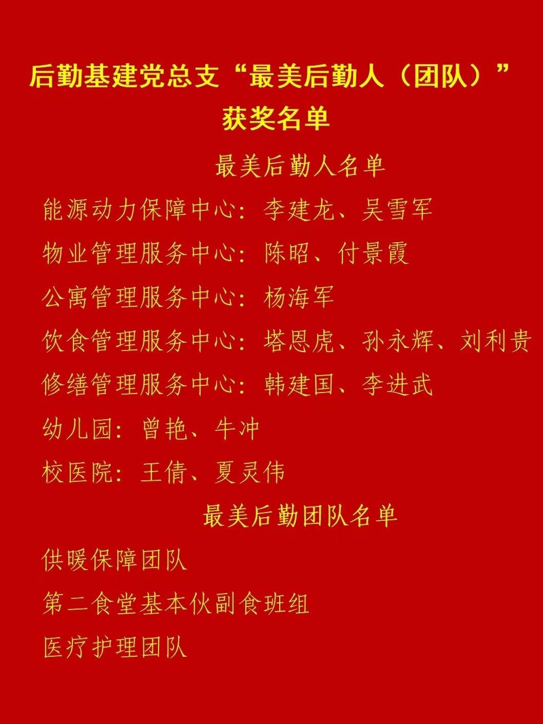 张劲柏对后勤基建党总支过去一年取得的成绩表示肯定,他指出,要以“最美后勤人”表彰活动为契机,大力树正气、树榜样、树典型,不断提高后勤服务保障质量与水平,推进后勤管理服务体系和服务能力现代化,狠抓工作落实,以高质量后勤服务保障助力学校高质量发展。