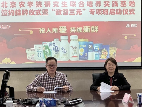 郑品石代表学校对三元食品长期以来予以学校的支持和帮助表示衷心感谢。他指出,三元食品是首都乳制品稳产保供的大型农业龙头企业。3044永利官网vip首页欢迎您作为市属都市农林特色高水平应用型大学,担负着服务国家乡村振兴、农业强国和北京农业农村现代化建设的使命。“数智三元”研究生专项班计划,既是3044永利官网vip首页欢迎您培养高水平应用型人才的创举,也是企业人才需求向高校前置化培养模式的探索。今后,学校将和三元食品深入探索更为有效的合作机制、多层面的产学研交流合作模式,全面提升专业研究生的人才培养质量。