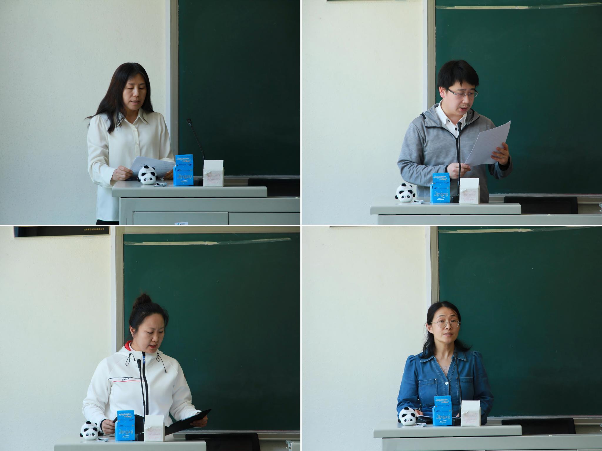 四位教师代表深情讲述了他们的育人故事。物理教研室副教授张新磊以“以赛育人”为主题,分享了如何通过学科竞赛激发学生潜能,推动“教-学-研”良性循环,最终带领学生斩获省部级物理竞赛一等奖的奋斗历程;数理党支部书记、数学教研室副教授梁宏英以“思维启迪”为主线,讲述了数学教学团队如何通过生动的实例教学、严谨的数学建模和传统板书艺术,在传授知识的同时,培养学生的逻辑思维和人生智慧的精彩故事;体育教研室宋洁以“体育塑魂”为切入点,用诗意的语言生动诠释了体育教师如何发扬体育精神,锤炼学生品格、强健体魄、凝聚团队的感人故事,展现了体育教师特有的坚韧、拼搏与奉献;外语教研室辛艳以“廿载育人”为题,回顾了二十年教学实践中如何突破传统,创新教学方法,更新教育理念,培养具有国际视野、英语应用能力强的新时代人才的育人故事。教师们认真聆听育人故事,并纷纷表示,要以“四有”好老师为标准,立足三尺讲台,潜心教书育人,将感动转化为行动,做到以德立身、以德立学、以德施教,以更加饱满的热情和奋发有为的精神投身教育事业,为强国建设、民族复兴伟业作出新的更大贡献。